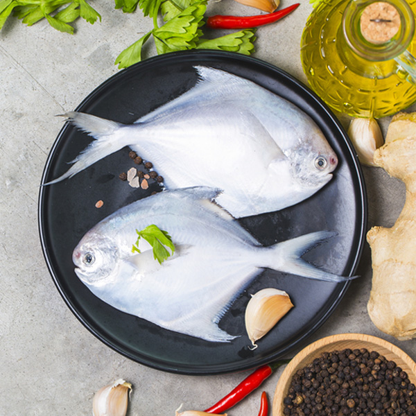 Silver Pomfret fish contribute one of the main groups of table fish in India. It is a seawater fish consisting of a single bone. It is considered as one of the finest fish for its distinct flavor and taste. Pomfrets are usually prepared whole after removing the inner organs from the fish’s body. The fish is at its best taste when they are cooked fresh.